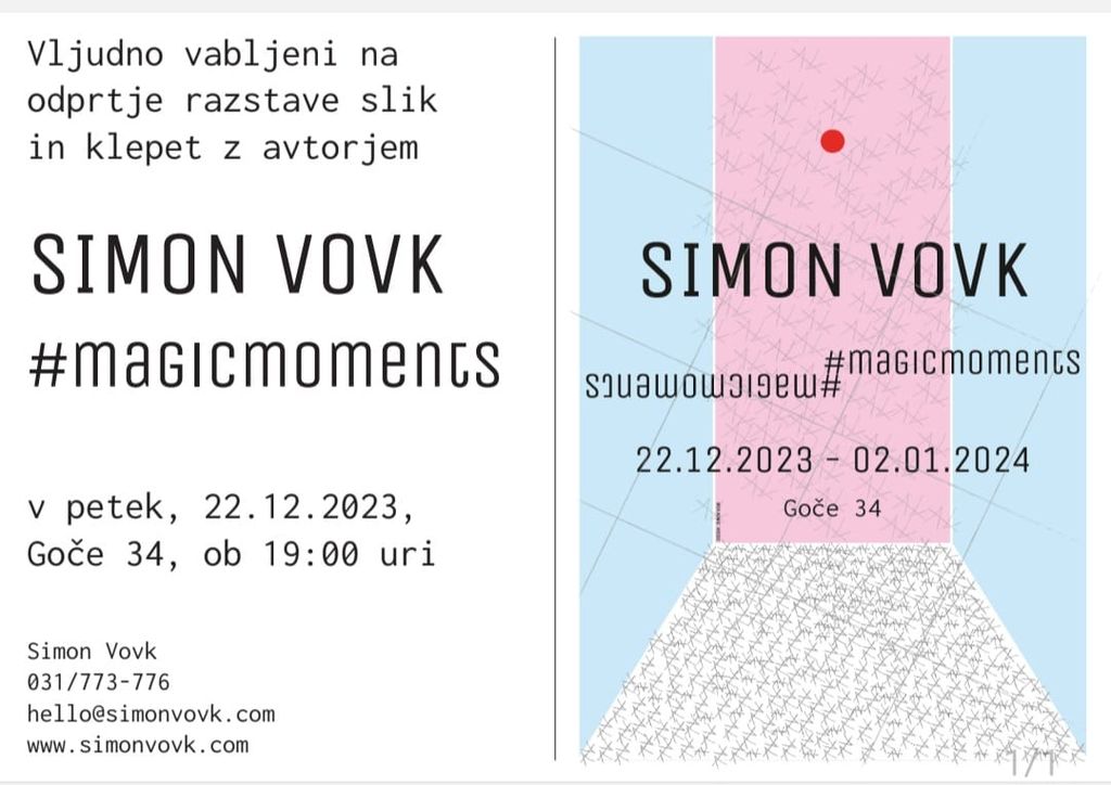 Vljudno vabjeni na odprtje razstave slik #magicmoments in klepet z avtorjem Simonom Vovkom.