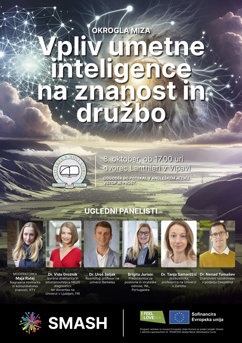 Univerza v Novi Gorici vas vabi na javno okroglo mizo o vplivu umetne inteligence na znanost in družbo, ki se bo odvila pod okriljem podoktorskega programa SMASH.