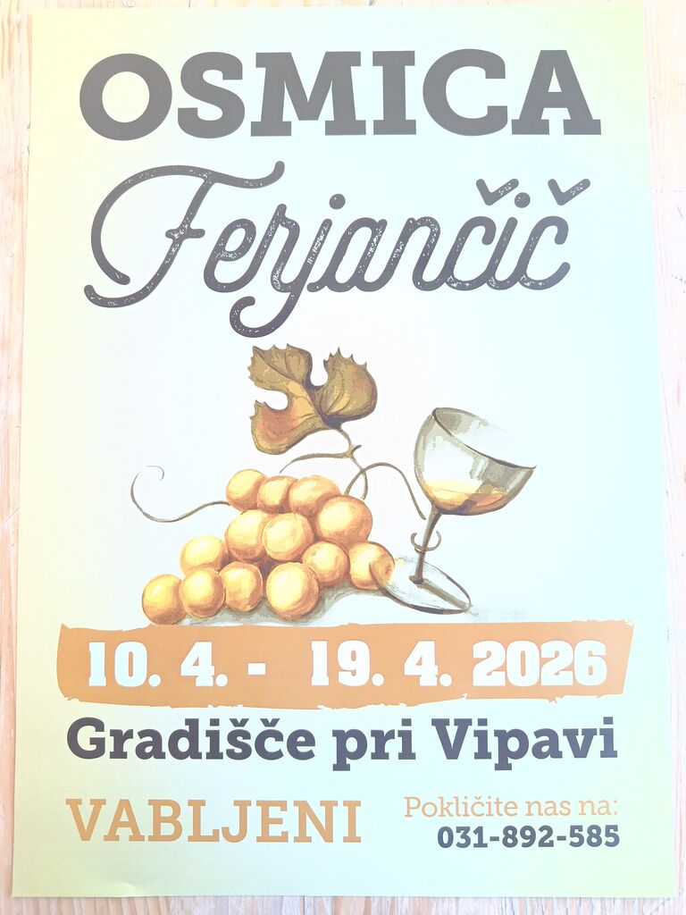 Vabljeni na Osmico Ferjančič, ki bo odprta od 10.4 - 19.4.2026.