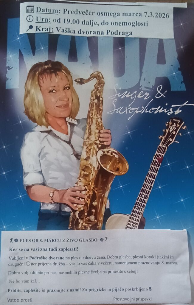 v Kulturnem domu v Podragi dne 07.03.2026 od 19 h naprej.