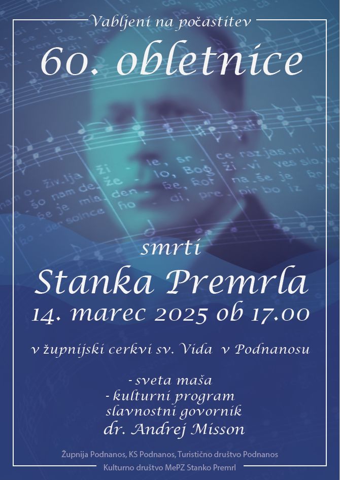V župnijski cerkvi sv. Vida v Podnanosu bo 14. marca ob 17. uri potekala počastitev 60. obletnice smrti Stanka Premrla.