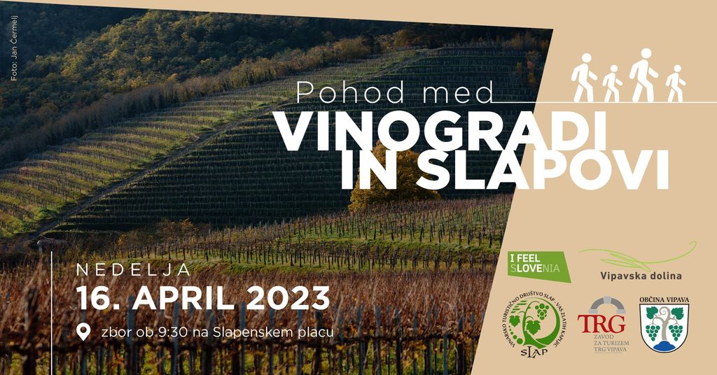 V nedeljo, 16. 4. 2023, bo potekal že 9. tradicionalni pohod med vinogradi in slapovi idilične vasice Slap. Na vaškem placu se začnemo zbirati ob 9.15 do 9.45, začetek pohoda je ob 9.45.