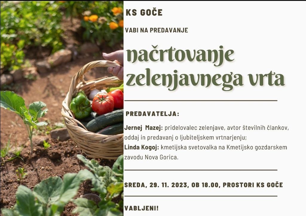 KS Goče vabi na predavanje načrtovanje zelenjavnega vrta, ki bo v sredo 29.11.2023 ob 18.00 v prostorih KS Goče.