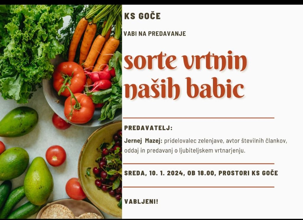 Krajevna skupnost Goče vabi na predavanje SORTE VRTNIN NAŠIH BABIC.