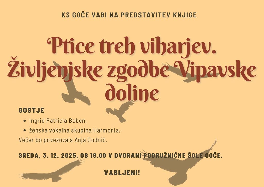 Krajevna skupnost Goče vabi na predstavitev knjige Ptice treh