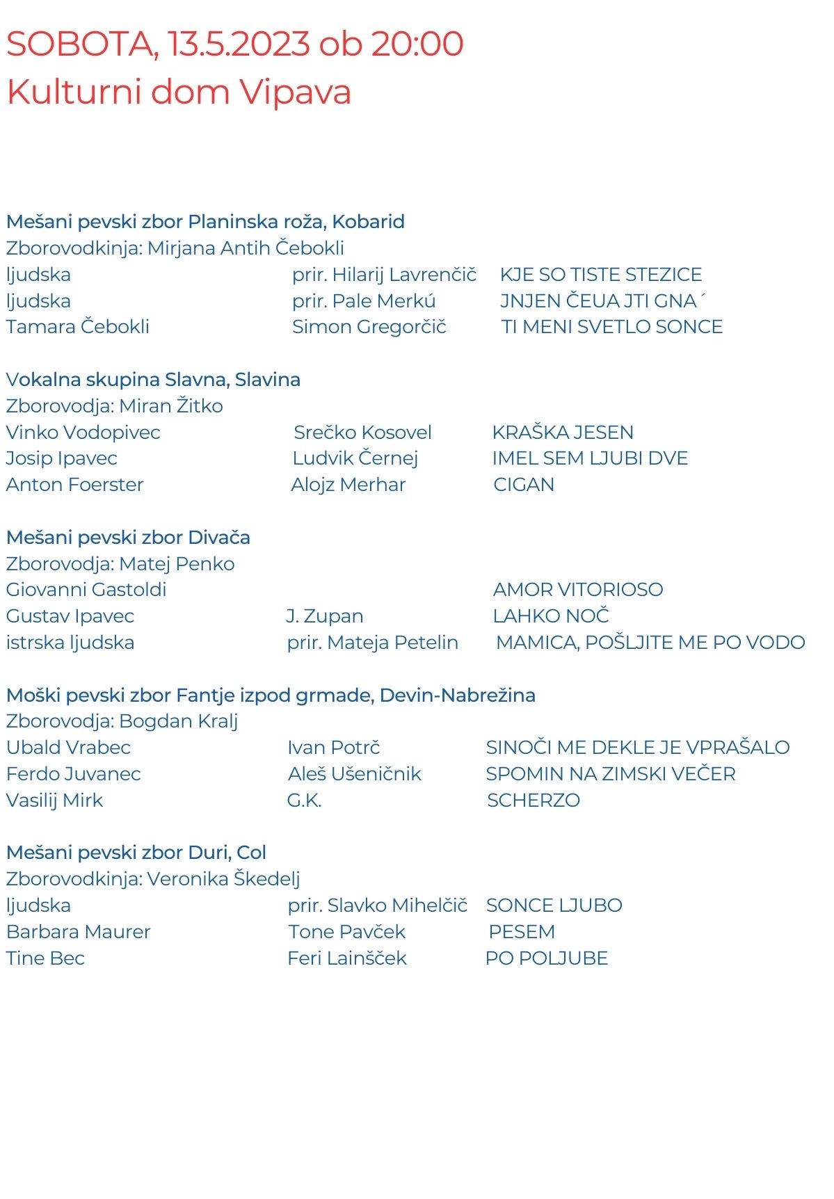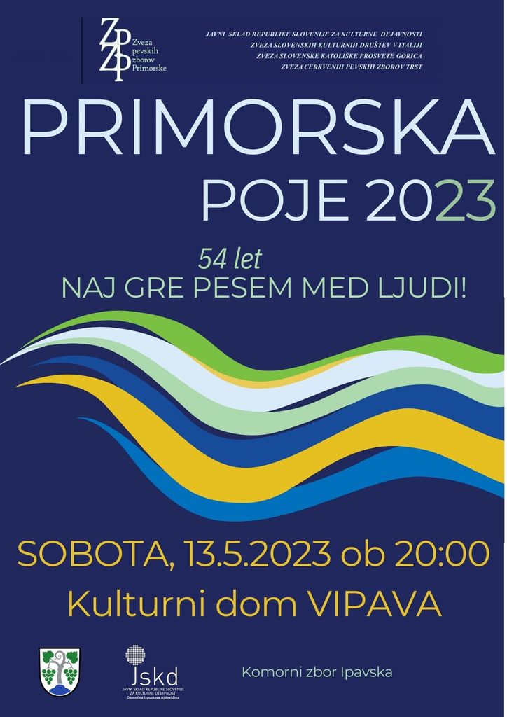 V soboto, 13. maja 2023 ob 20.00 vabljeni v Kulturni dom Vipava na prireditev PRIMORSKA POJE 2023.
