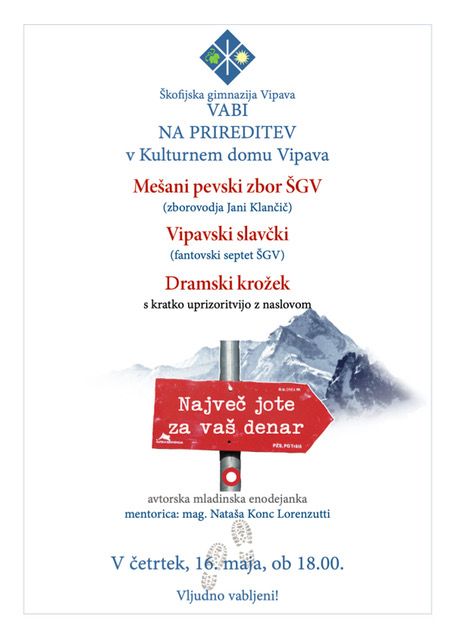 Škofijska gimnazija Vipava vabi na prireditev v Kulturnem domu Vipava, v četrtek, 16. maja, ob 18.00.