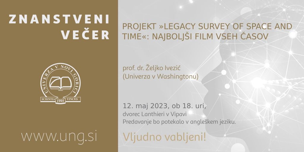 Univerza v Novi Gorici vabi na predavanje, ki ga bo imel prof. dr. Željko Ivezić (Univerza v Washingtonu), z naslovom Projekt »Legacy Survey of Space and Time«: Najboljši film vseh časov.