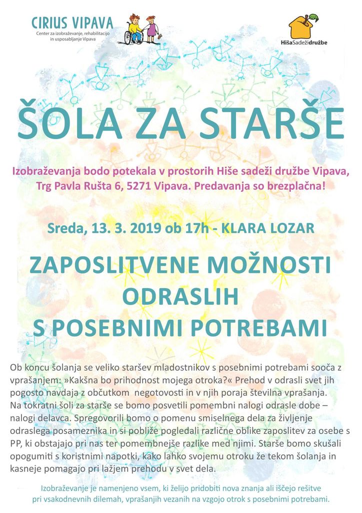 Organizator: CENTER ZA IZOBRAŽEVANJE, REHABILITACIJO IN USPOSABLJANJE VIPAVA