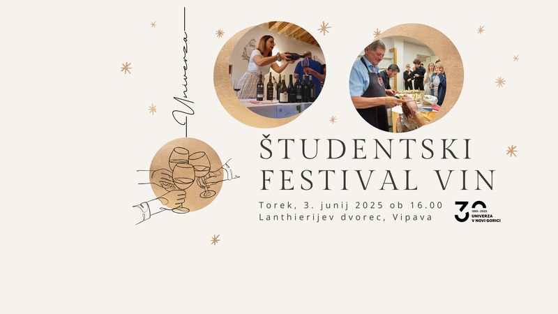 V torek, 3. junija 2025, vas vabimo na Študentski festival vin, ki ga organizira Fakulteta za vinogradništvo in vinarstvo Univerze v Novi Gorici.