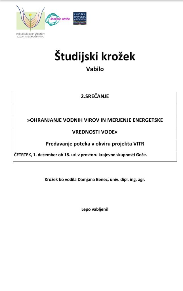 "Ohranjanje vodnih virov in merjenje energetske vrednosti vode".