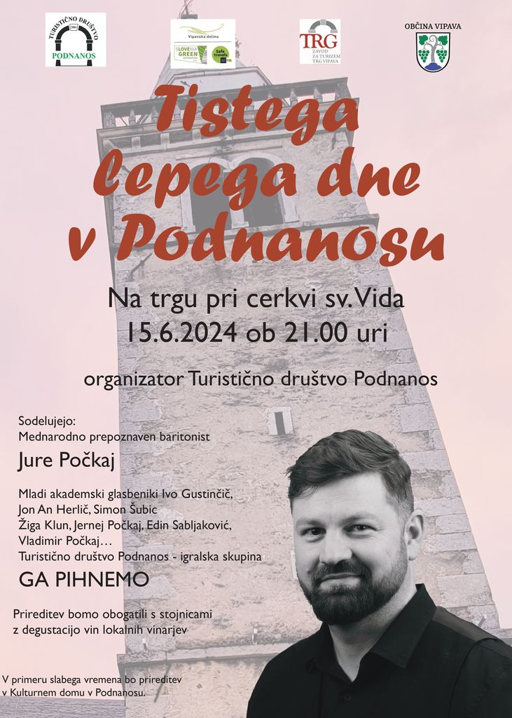 Dogodek bo potekal 15.6.2024 ob 21.00 uri, na trgu pri cerkvi sv. Vida.