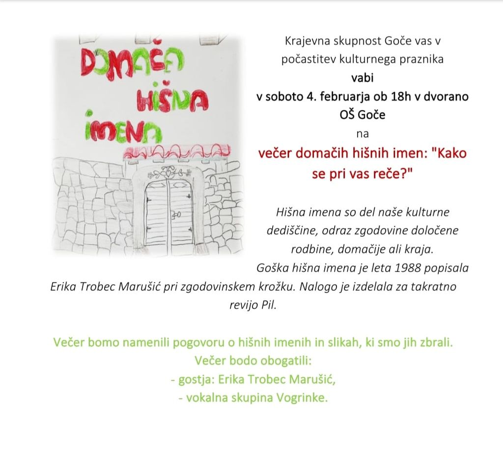 Goče na večer domačih hišnih imen "Kako se pri vas reče?"