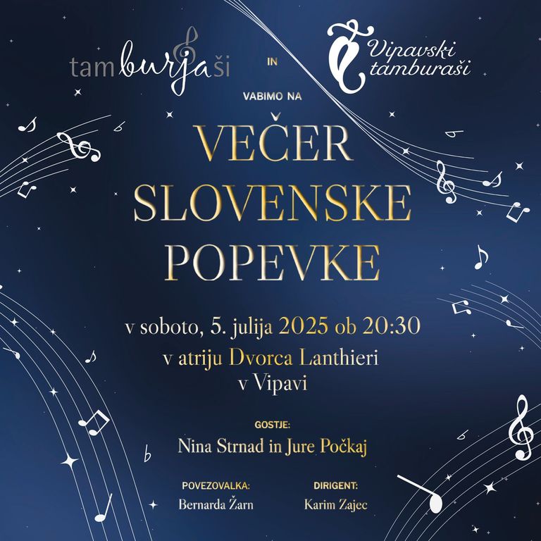 Vipavski tamburaši vabijo v atrij Lanthierijevega dvorca na Večer