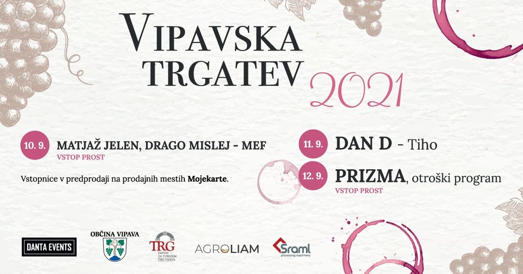- Petek 10.09.2021 ob 21.00 akustična nastopa Matjaž Jelen (Šank Rock), Drago Mislej MEF (Brezplačen vstop! Vstop na prizorišče je mogoč do zapolnitve mest.)