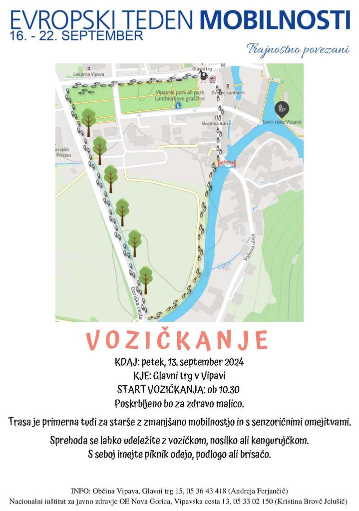 Tako bo Občina Vipava skupaj z Nacionalni inštitutom za javno zdravje OE Nova Gorica organizirala VOZIČKANJE.