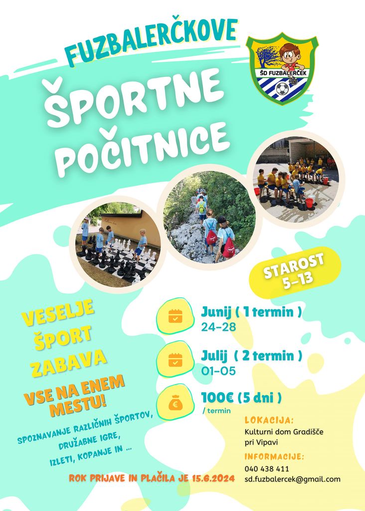 sporočamo, da odpiramo prijave za letošnje FUZBALERČKOVE ŠPORTNE