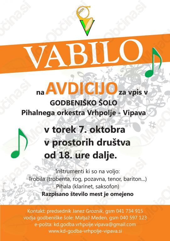 Za vse dodatne informacije: kd.godba.vrhpolje.vipava@gmail.com