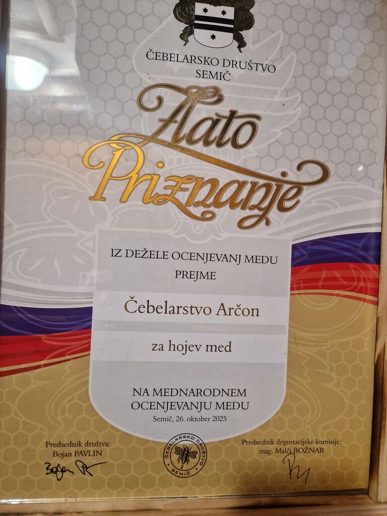 Odličja pa so mu prinesli tudi rezultati z mednarodnega ocenjevanja v Semiču, kjer je dosegel tri zlata odličja – za hojev, lipov in akacijev med.