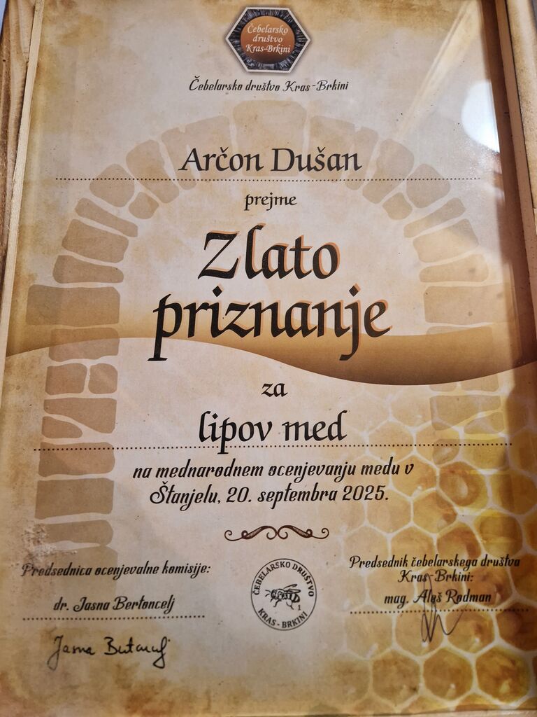 Njegovi uspehi so dokaz vrhunske kakovosti domačega medu in predane skrbi za čebele ter naravo. Dušanu iz srca čestitamo in mu želimo še veliko medenih uspehov.