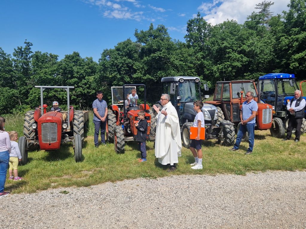 Teden dni kasneje, 11. maja, je sledil še en poseben dogodek – blagoslov traktorjev, ki je letos potekal že tretjič zapored. Na prizorišču so se zbrali traktoristi, ki so svoje stroje skrbno pripravili za blagoslov. Domači župnik Ivan Furlan je daroval sveto mašo in blagoslovil vse navzoče – tako ljudi kot njihove stroje, ki jim vsak dan pomagajo pri delu na zemlji. V zraku je bilo čutiti ponos na podeželsko življenje, spoštovanje do dela in veselje ob skupnem praznovanju.