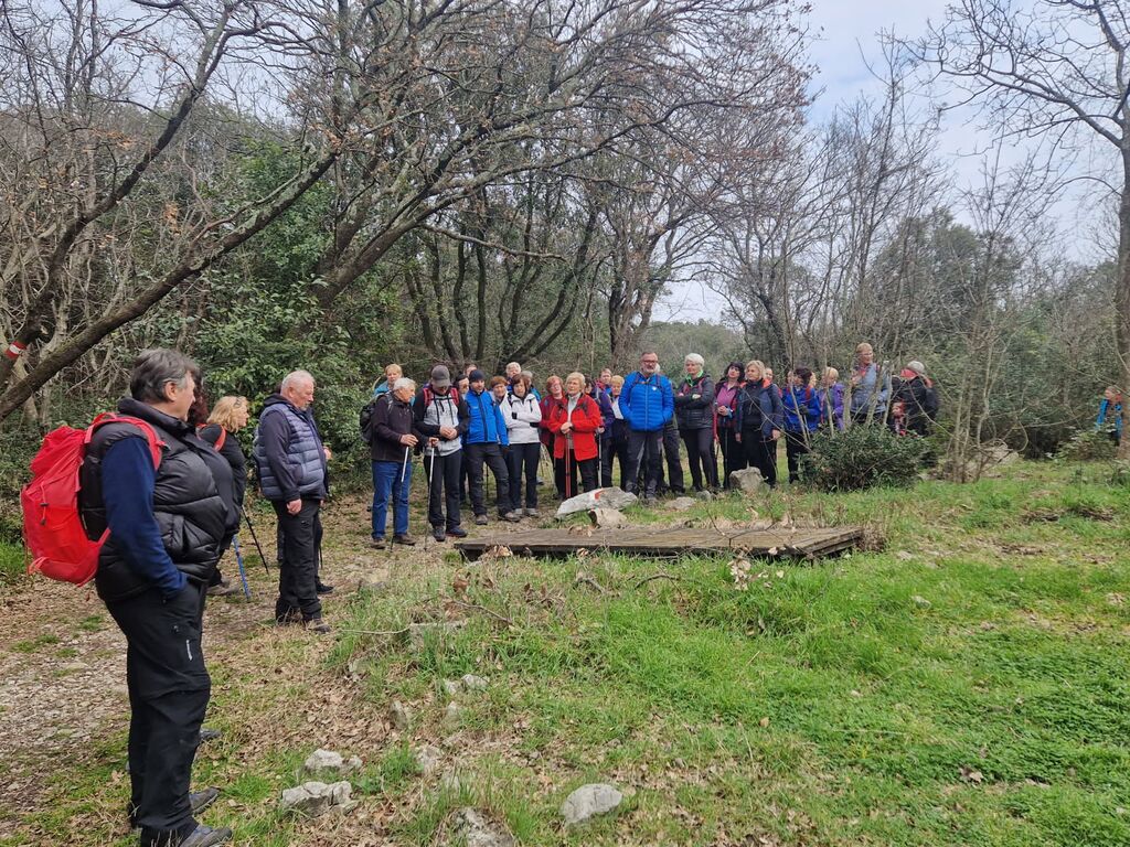 Hojo smo začeli v Štivanu, pri enem od izvirov reke Timave, ob lepi stari cerkvici sv. Janeza Krstnika, po kateri se kraj tudi imenuje. Kmalu smo jo mahnili navkreber mimo nove cerkve sv. Janeza Krstnika ter uživali v čudoviti kraški pokrajini z meglenimi razgledi na morje. Ustavili smo se v jami z ostanki svetišča boga Mitre, odkritega leta 1976. Po ogledu smo nadaljevali pot visoko nad morjem ter se ob razgledu na Devinski grad vzpenjali naprej. Ves čas so nas spremljali ostanki utrdb iz prve svetovne vojne – jarki, jame in rovi, ki pričajo o burni zgodovini tega območja.