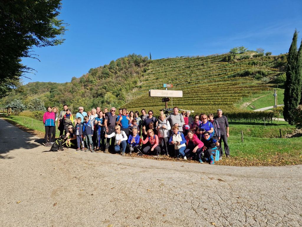 Športno društvo Hudournik Goče je v nedeljo, 20. oktobra, v sodelovanju s Krajevno skupnostjo Goče, izvedlo pohod v Brda na učno pot Trcinko. Pot nas je z avtobusom z Goč popeljala med briške griče, med rdeče listje vinske trte. Pohod smo začeli na kamnitem mostu čez potok Kožbanšček in se povzpeli do skrbno urejene domačije Čarga. Že smo prišli do prvega kažipota, ki označuje eno od devetih pohodnih poti čez in med briškimi griči. Tam so nas so prijazno vzele medse dve domačinki Nataša in Ivanka, ki sta bili naši vodički.