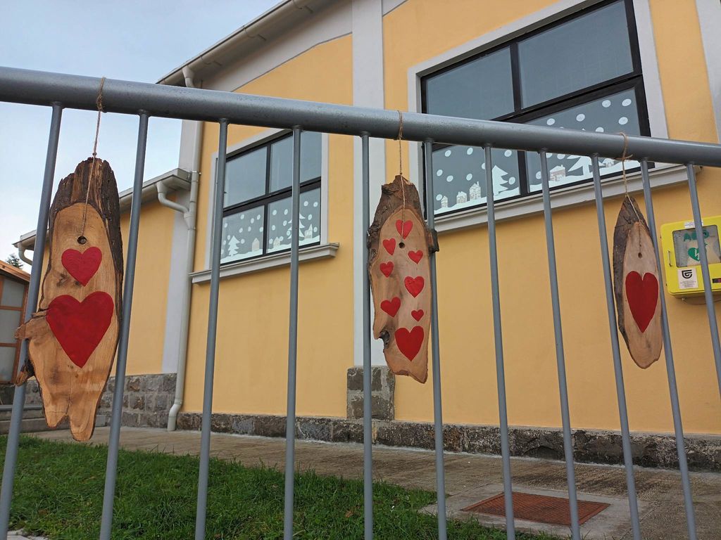 Krajevna skupnost Goče je pred šolo postavila novoletno smrečico in jo okrasila z lučkami. Z učenci pa smo pripravili okraske iz naravnih materialov. Na lesene odrezke iz vej smo prilepili srčke, izrezane iz serviet. Okrasili smo tudi ograjo pred šolo z lesenimi deščicami, na katere smo narisali motiv srca.