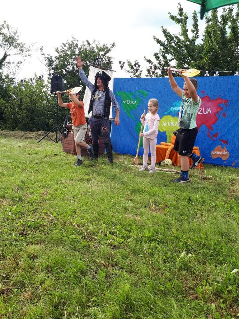 V soboto, 20. junija, smo na Gočah pripravili pozdrav poletju. Prvi del, namenjen najmlajši publiki, se je odvijal na travniku pri pokopališču. Pika Nogavička in pogumni gusar Valiz Zavoda Enostavno prijatelji sta s pomočjo otrok prikazala pravo pomorsko pustolovščino. Gusar Val je našel strgan starodaven zemljevid, ki vodi do otoka zakladov. Med iskanjem manjkajočega dela zemljevida, mu je načrte prekrižala najmočnejša, najbolj zabavna in najpogumnejša punca na svetu, Pika Nogavička. Za pravo gusarsko vzdušje je poskrbelo muhasto vreme. Vsi sodelujoči so se na koncu razveselili zaklada in sonca. Po predstavi je sledila delavnica z velikimi milnimi mehurčki, ki je navdušila prav vse. Otroci so tekali za baloni, uganjali norčije ter se slikali s Piko Nogavičko in gusarjem.