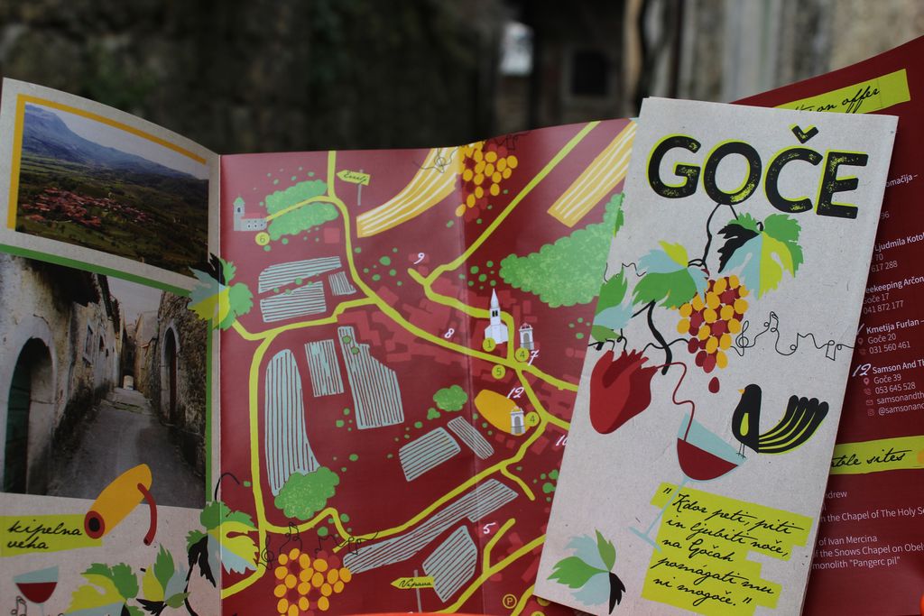 Vse ključne znamenitosti so označene tudi na zemljevidu, skupaj z nekaterimi lokalnimi ponudniki vina, medu, suhomesnatih izdelkov,domačimi ustvarjalci unikatnih izdelkov ter novimi namestitvenimi možnostmi. Zgibanka je trenutno na voljo v dveh jezikovnih različicah, slovenščini in angleščini. Njen izid je omogočila Zavarovalnica Triglav, OE Nova Gorica, za oblikovanje in pripravo za tisk pa sta poskrbeli Urška Černigoj in Tea Goljevšček. Vsem, ki so sodelovali pri tem projektu, se najlepše zahvaljujemo.