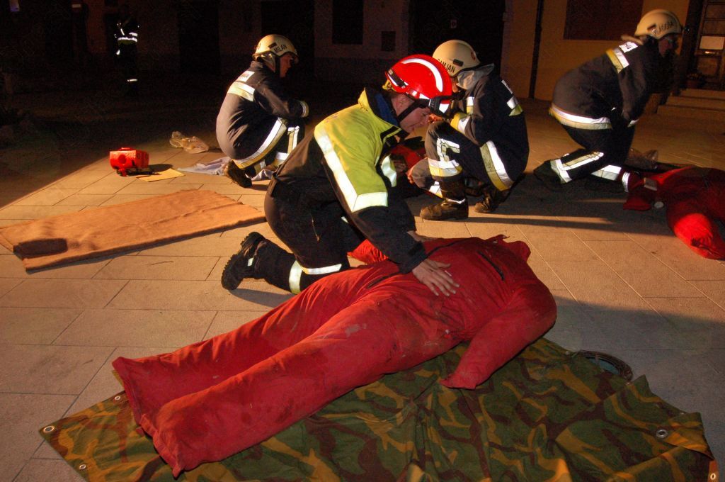 Po tehtnem premisleku smo se organizatorji odločili, da izvedemo nenapovedano vajo s predpostavko, da je zaradi napake na električni instalaciji v pritličju objekta prišlo do požara, ki se je razširil na lesene elemente v prostoru. Zaradi zelo gostega dima, ki se je nakopičil v pritličju in nadstropju objekta, je ostalo ujetih pet oseb. S posebnimi učinki filmskega dima smo hoteli poustvariti realne pogoje, ki bi dodatno zapletli in otežili delo gasilcev pri reševanju in gašenju. Od gasilcev se je pričakovala pravilna izbira taktike nastopa na požarišču, hitro in ustrezno reševanje ponesrečencev ter učinkovito gašenje. Na poziv regijskega centra za obveščanje Nova Gorica ob 20:16 se je odzvalo devetnajst gasilcev, ki so z vozili GVC 16/25, AC 16/70 in GVM-1 prispeli na lokacijo požara le nekaj minut po pozivu. Vodja vaje je po hitrem ogledu lokacije in okolice objekta izdal povelje za izvedbo notranjega napada skozi glavni vhod, z uporabo 'klasičnega' nizkotlačnega cevovoda in napada preko trodelne lestve skozi okno v nadstropju z visokotlačnim cevovodom. Napadalne skupine so ponesrečence predale v oskrbo reševalcem, nato pa so ustrezno lokalizirali požar, prezračili objekt ter ponovno pregledali objekt z uporabo termovizijske kamere. V tem času so tudi reševalci iz vrst vipavskih gasilcev dobro opravili delo in oskrbeli vseh pet ponesrečencev, ki so bili pripravljeni za prevoz v bolnišnico. Vaja se je uspešno zaključila ob 21:26.