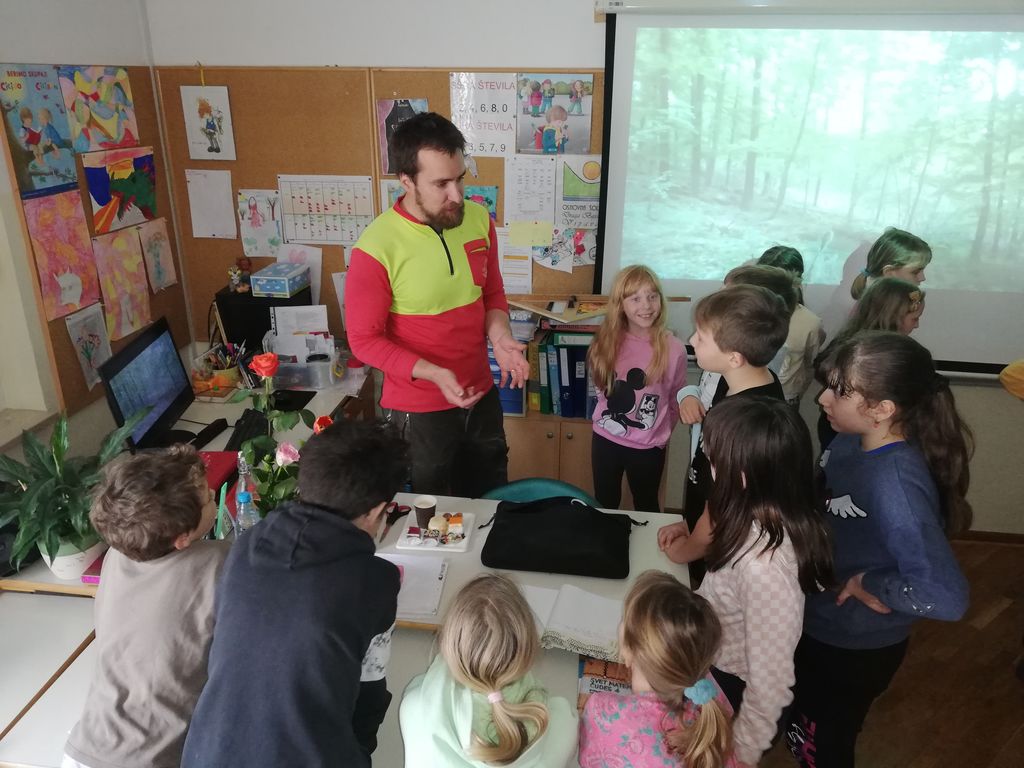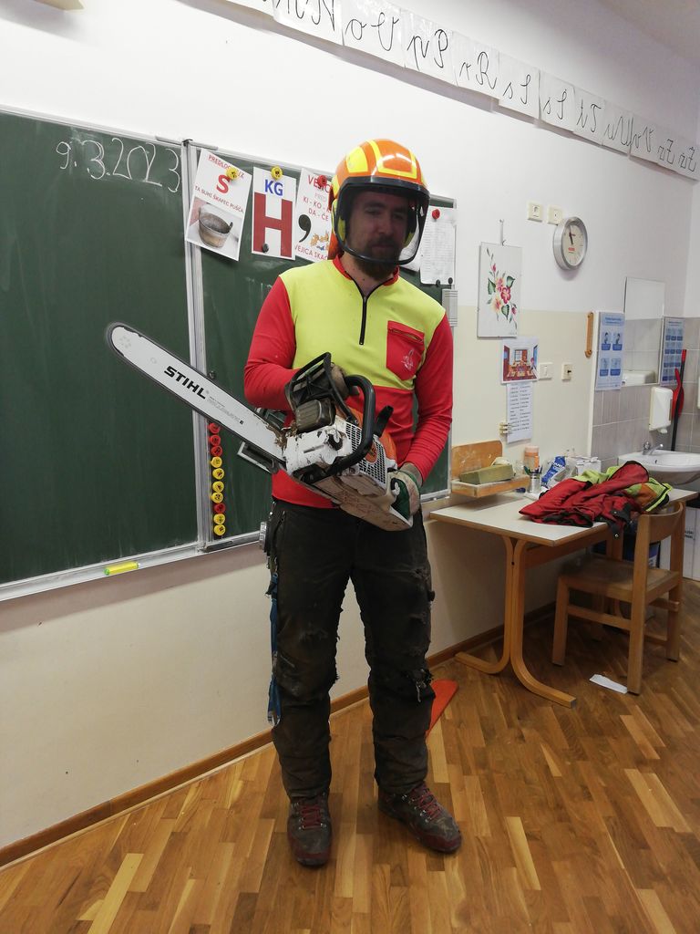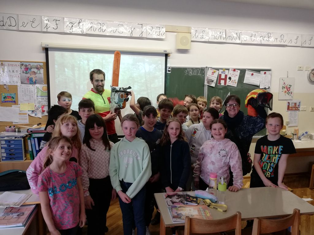 V sredo, 8. 3. 2023, nas je obiskal Venotov oče Ram Cunta. Prišel nam je opisat svoj poklic gozdarja. K nam je prišel po končani malici in se zadržal dve šolski uri. V šolo je prišel z uniformo. Razlagal nam je o gozdarstvu. Lepo smo se imeli. Pokazal nam je videoposnetek o njegovih izkušnjah. Naredil je power point predstavitev o gozdarstvu. Razkazal nam je njegovo opremo. Lahko smo držali motorno žago. Razložil nam je, kako se pravilno žaga drva in kaj narediš, ko se srečaš z divjo živaljo. Izvedeli smo o njegovih izkušnjah, nesrečah in srečanjih z divjimi živalmi. Dolgo smo ga spraševali. Povedal nam je, katere živali je že srečal. Videl je tudi medveda in sovo. Razložil nam je, da gozdarji vstajajo zgodaj zjutraj in gredo na delo. Delajo samo ob sončnih dnevih. Pojasnil nam je tudi, kako se pravilno podre in zasadi drevesa. Na koncu nas je gospa Elena fotografirala z njim.