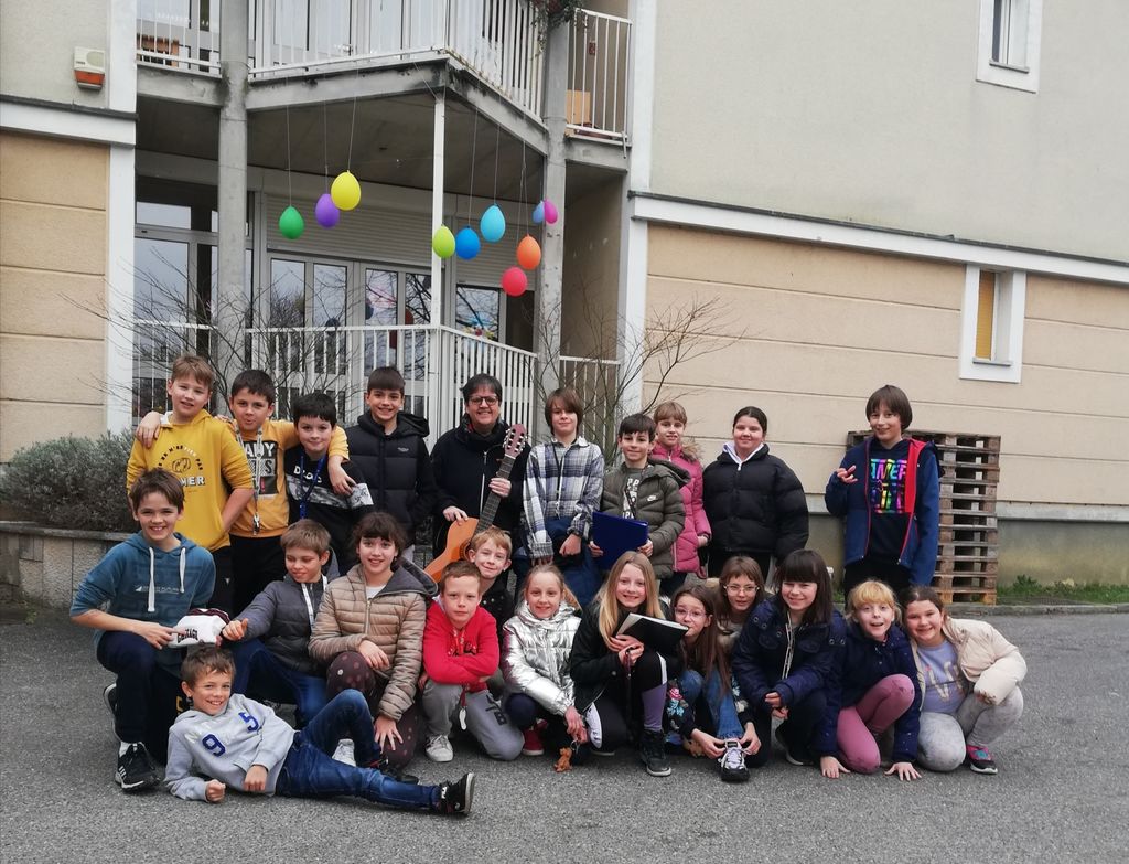 Na poti domov smo s pesmijo do solz ganili še gospo Jolando, skoraj prvo sosedo naše šole. Učenka Eneja je komentirala: »Ne spravi vsaka glasba človeka od veselja v jok, a naša ga!«