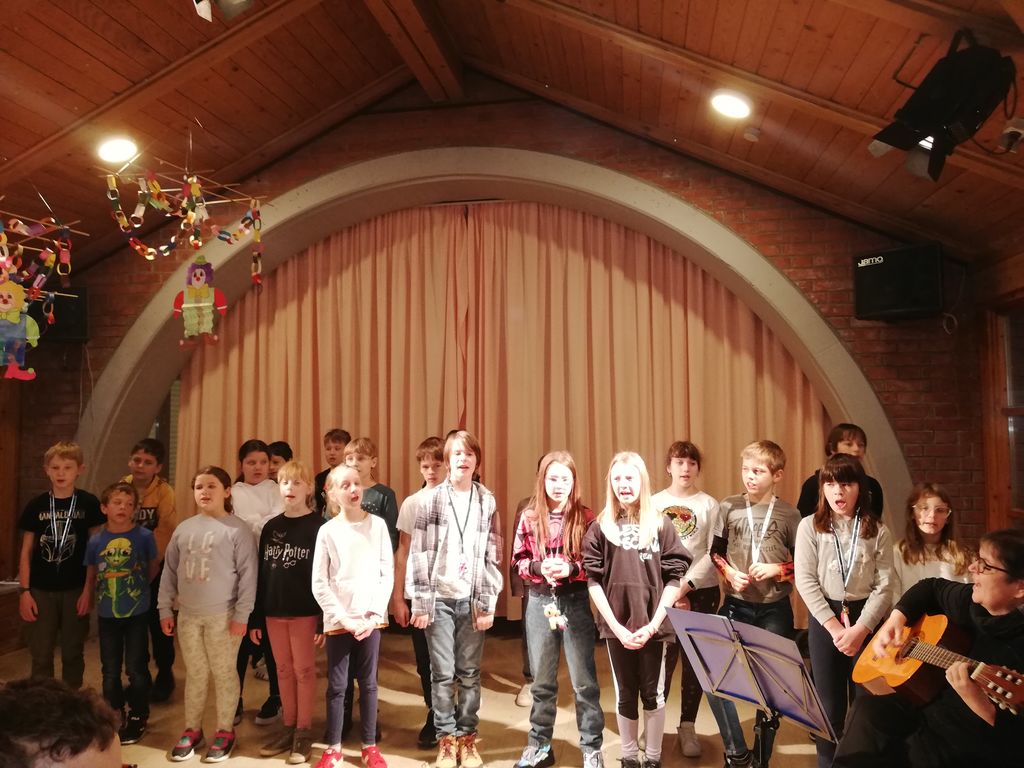 V veselem vzdušju smo zapeli venček slovenskih ljudskih in avtorskih pesmi. Pri tem so nam s petjem pomagali tudi varovanci CIRIUS-a in od skupnega petja so se tresle stene. Navdušenje je bilo čutiti med nastopajočimi in poslušalci, med otroki in odraslimi, ki smo peli skupaj. Polna avla veselih nasmejanih obrazov nam je dala veličastni občutek, da bo ta dogodek ostal zapisan med nesmrtnimi spomini vseh prisotnih. Nekaj pesmi smo zapeli tudi skupaj z gospo Loredano Sajovic, ki v CIRIUS-u skrbi za glasbo. Lepo je bilo …