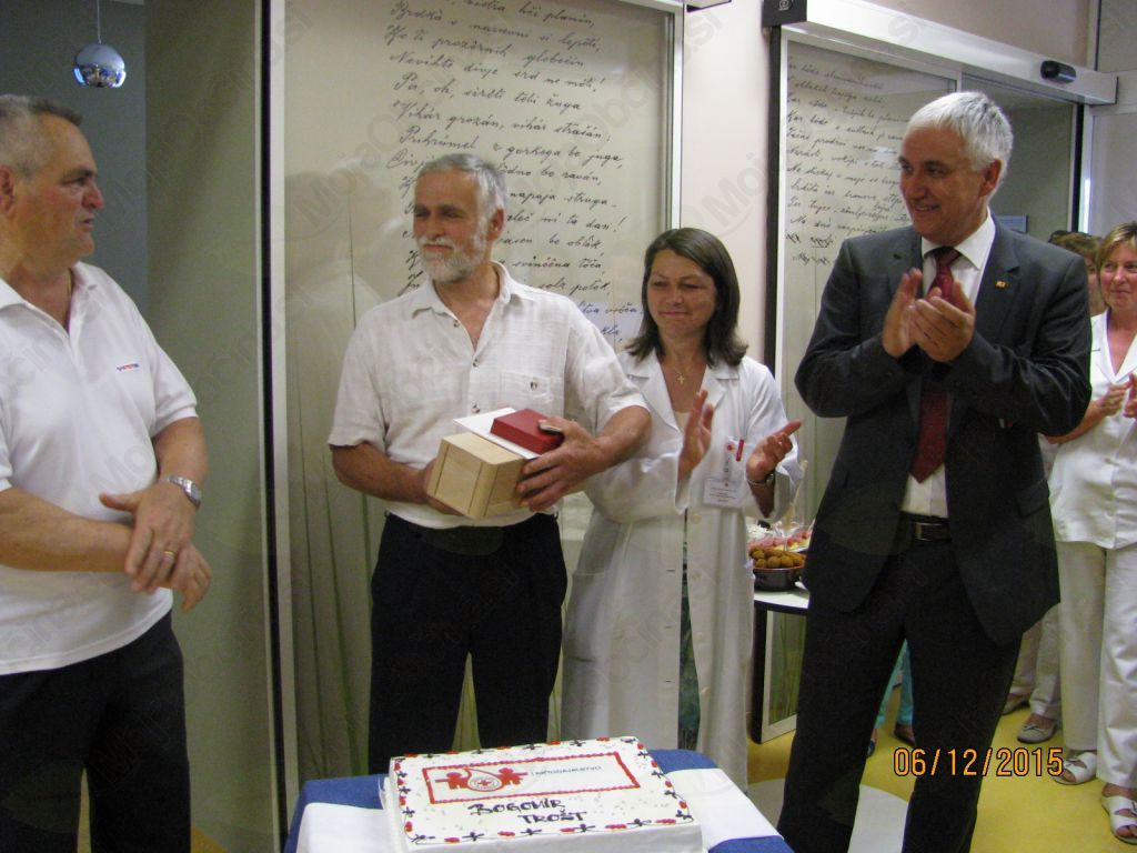 Predsednik RKS – OZ Ajdovščina Rajko Troha, vodja oddelka CTD Nova Gorica dr. Janka Černe in direktor Zavoda RS za transfuzijsko medicino dr. Danijel Starman so ob tej priložnosti čestitali g. Troštu za njegovo dolgoletno nesebično pomoč bolnicam in bolnikom. G. Troha mu je ob tej priložnosti tudi izročil priznanje in skromno darilo. Vsi skupaj so nato razrezali krvodajalsko torto in jo razdelili med obiskovalce odprtja oddelka, ki pomeni velik doprinos naši regiji.