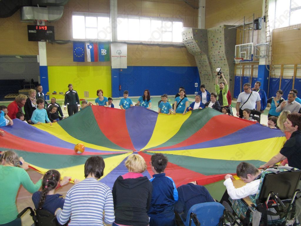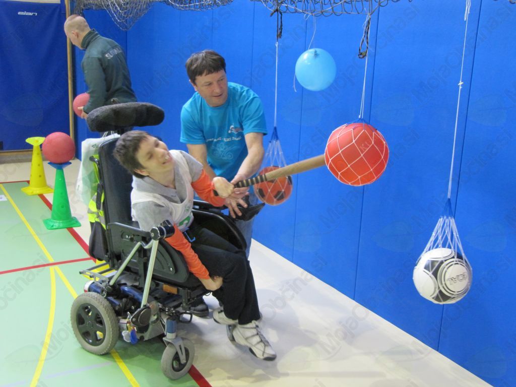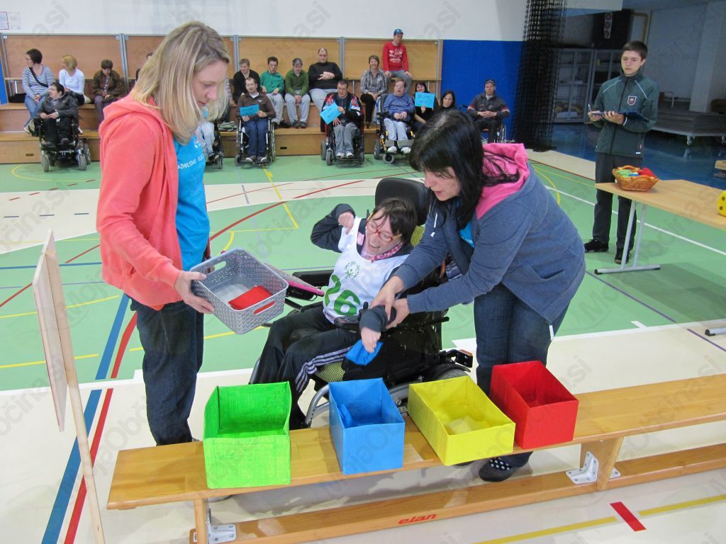 V lepi dvorani so na šestih postajah potekale naslednje aktivnosti: vožnja - hoja po različnih podlagah, podiranje kegljev, udarjanje balonov - žog, brcanje - potiskanje žoge v gol, vožnja z vozičkom na električni in aktivni pogon ter met vrečk. Vsi tekmovalci so sami ali s pomočjo zmogli opraviti naloge - z majhnimi koraki so postali veliki junaki. Na koncu so se zelo radi vključili še v razne igre za sprostitev.