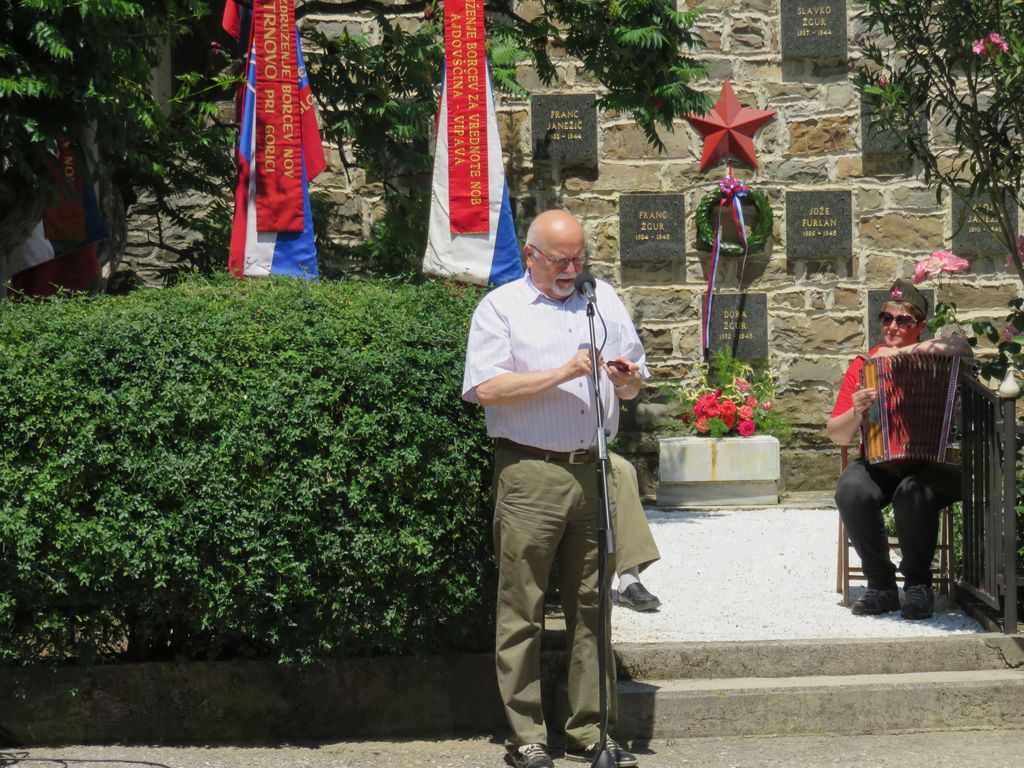 Slavnostni govornik Božo Novak, predsednik Združenja Borcev za vrednote NOB Ajdovščina-Vipava je v svojem govoru preteklost povezal s sedanjostjo in poudaril pomen poznavanja in razumevanja zgodovine. “Ko se spominjamo dogodkov iz narodnoosvobodilnega boja, se moramo nujno navezati tudi na sedanjost. Poznavanje zgodovine nam omogoča, da se bolje soočamo s sedanjimi problemi slovenske družbe« je dejal. In še: »Udeleževanje na spominskih svečanostih, manifestacijah in komemoracijah, ki so vezane na obdobje protifašizma in narodnoosvobodilnega boja, nam omogoča, da se seznanjamo in soočamo s preteklimi in sedanjimi težavami. Ta dejanja pomenijo tudi utrjevanje narodne zavesti, potrjevanje vrednot antifašizma in potrjevanje vrednot narodnoosvobodilnega boja.« Poudaril je tudi, da si mora: »vso to dediščino prisvojiti ter jo razumeti mladina, novi, mlajši rod. Le tako bo še enkrat potrjeno, da žrtve II. sv. vojne in osamosvojitvene vojne niso bile zaman.« Svoje misli je zaključil z besedami znanega angleškega državnika sira Winstona Churchilla: »Samo tisti, ki gleda jasno v preteklost, vidi daleč v prihodnost«.