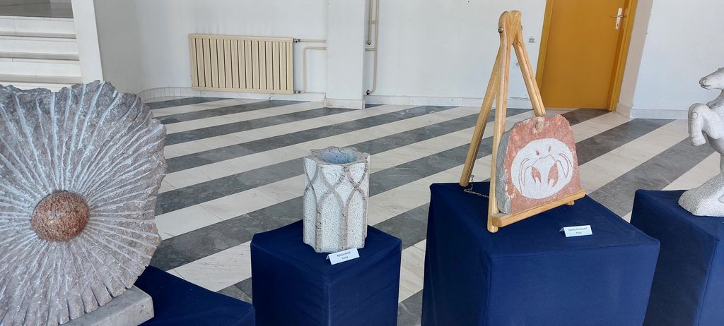 V prostorih bivše veleblagovnice Nanos so kamnoseki, člani Društva Most, postavili na ogled svoja dela.