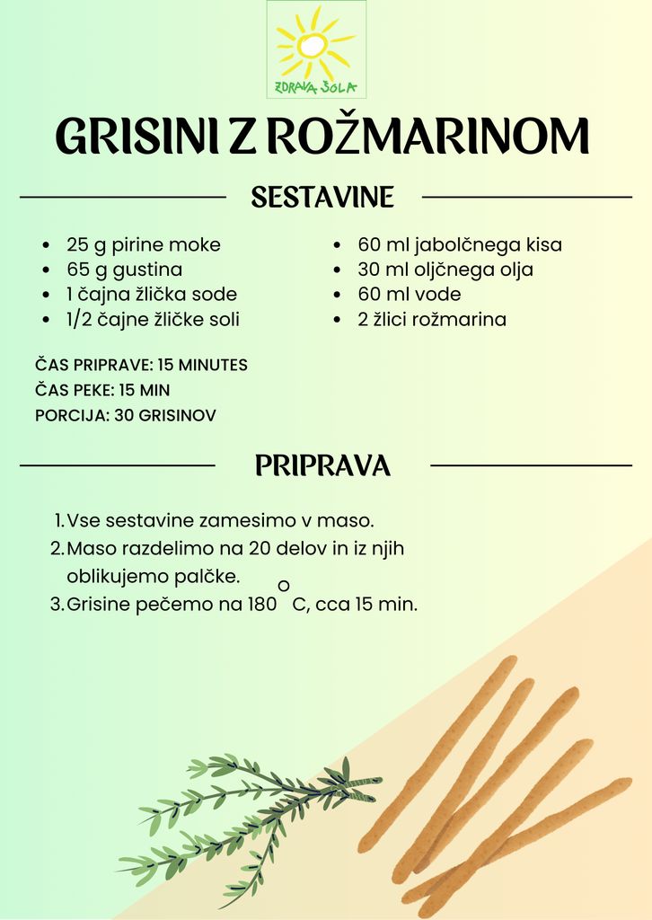 Pomlad je čas za Svitov dogodek, ki ga pripravlja CKZ Ajdovščina. Kot Zdrava šola smo bili na dogodek povabljeni tudi mi. Z veseljem smo se odzvali in pripravili svojo stojnico in tri delavnice. Poiskali smo recepte za zdrave grisine in namaze. Učenci so le-te pripravili v šolski kuhinji in jih postavili v pokušino obiskovalcem. Uporabili smo zdravo ajdovo, pirino in polnozrnato moko ter sezamova in lanena semena. Učenci so pripravili tudi dva okusna in zdrava namaza iz svežih zelišč, ki nam že krasijo pomladne vrtove.