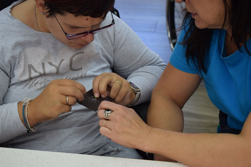 Posebej smo znani prav po izdelavi raznolikih voščilnic za vse priložnosti: ob rojstnem dnevu, novem letu, rojstvu novorojenčka, ko se želimo zahvaliti ali pa kar tako komu polepšati dan. Izdelovanje voščilnic je dejavnost, ki nas zaposluje ter spremlja skozi vse leto. V teh dneh pa v naših delavnicah še posebej pridno vezemo, režemo, lepimo … Novo leto se namreč hitro približuje in s tem tudi čas, ko bomo svoje prijatelje, sorodnike ali poslovne partnerje lahko presenetili z unikatno voščilnico. Vsaka je narejena ročno. Vanje vtkemo, všijemo in nanizamo svojo potrpežljivost, trud, ideje, želje in pričakovanja. Učimo se sodelovanja in spoštovanja. Do dela in zlasti drug do drugega.
