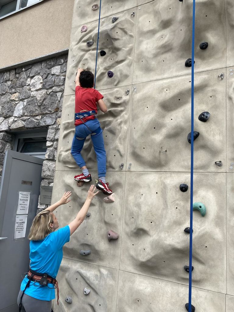 Nadeli smo si profesionalno plezalno opremo in se v trenutku spremenili v prave plezalce. Vsak učenec je premagal svojo višino in preplezal višje od pričakovanj.