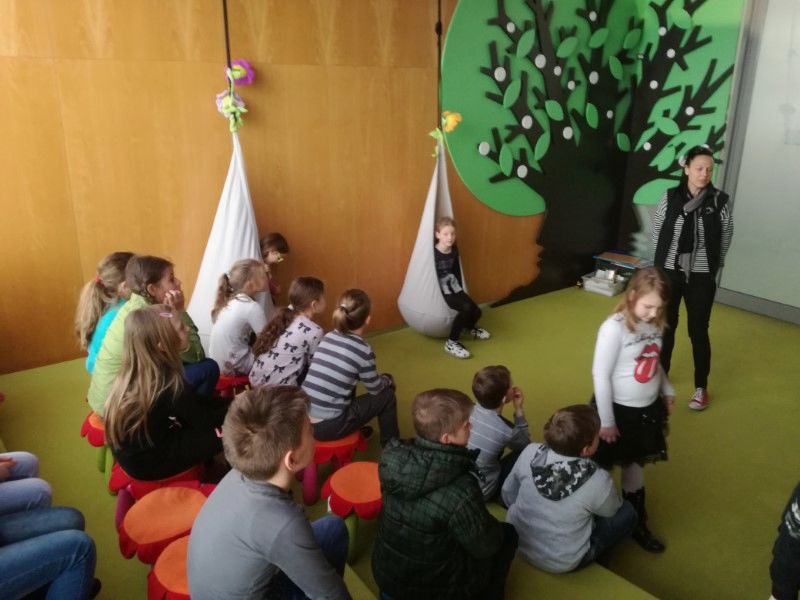 Hitro je minilo, a še hitrejše smo se morali odpraviti v sosednjo kulturno ustanovo – Goriško knjižnico Franceta Bevka. Tam so nas zopet pričakale prijazne knjižničarke, ki so nas popeljale po celotni knjižnici in nam predstavile njihovo delo ter pokazale, kaj vse hranijo tam. Tudi sami smo lahko tipali knjige, revije in zbornike, ki jih hranijo v arhivu knjižnice, vendar smo si morali pred tem nadeti posebne bele rokavice, ki preprečujejo poškodbe le teh. Najbolj očarani smo bili nad posebno pravljično in kreativno sobo. Zagotovo se bomo vrnili tja, zdaj ko vemo, kje to je. Izvedeli smo tudi, kako postanemo člani njihove knjižnice in kako si izposodimo ter sami vrnemo knjižno gradivo na knjigomatu.