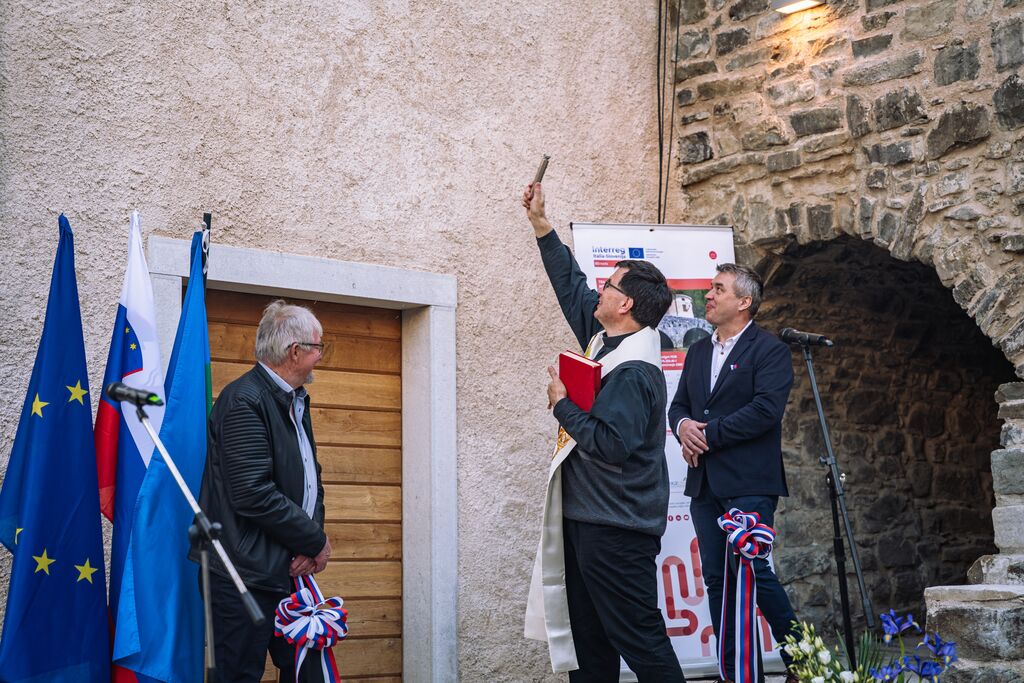 Vrhunec dogodka je bilo simbolično rezanje traku, ki sta ga izvedla župan Občine Vipava Anton Lavrenčič in predsednik Krajevne skupnosti Podnanos Stojan Vitežnik, sledil pa je še blagoslov hiše.