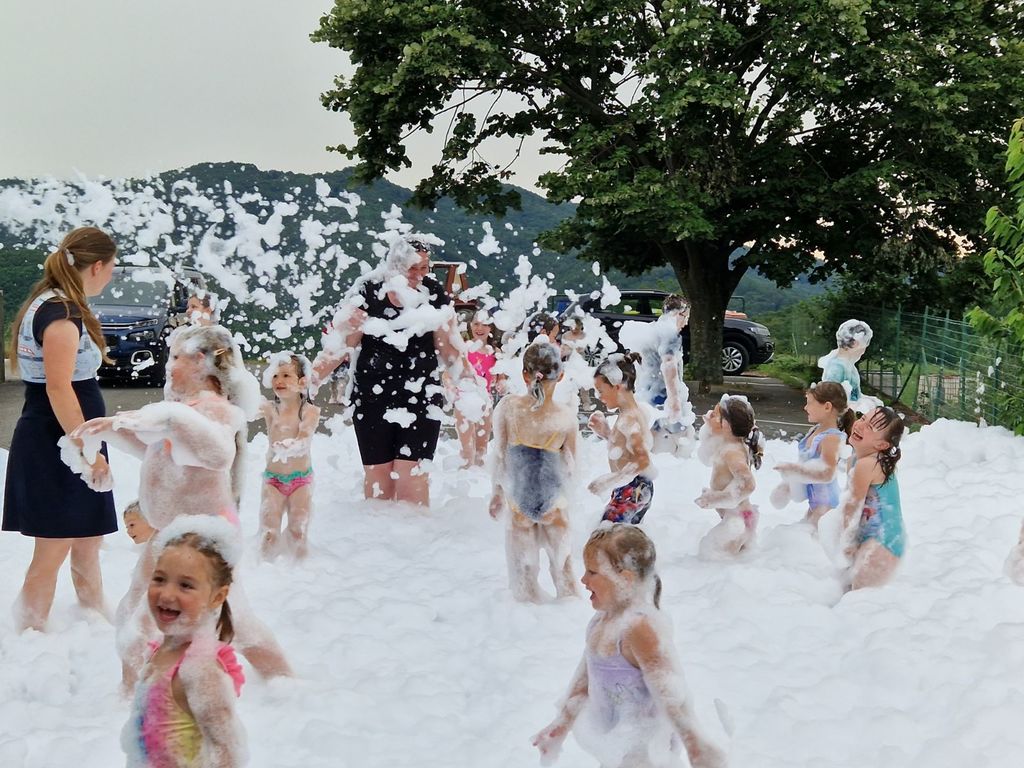 Sobotno popoldne je bilo namenjen najmlajši publiki, a so se opogumili tudi starejši. Na parkirišču pri pokopališču so se lahko vsi, ki so si zaželeli nekaj novega, zabavali v pena partyu. Razpoloženega vriskanja ni manjkalo. Dan se je prevešal k večeru in dogajanje se je preselilo na vaški plac J'gno, kjer nas je razveselila živa glasba. V prijetnem druženju smo se pogostili s pršutom. Nedeljsko popoldne je bilo namenjeno ohladitvi s sladoledom Mihjwc.