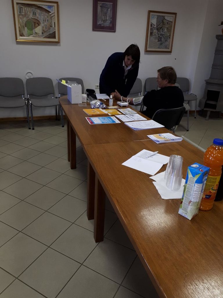 Ga. Rosana je izvedla meritve krvnega tlaka in krvnega sladkorja ter test »vstani in pojdi« z oceno tveganja za padce. Ker vsaka meritev zahteva določen čas, je bilo potrebno počakati na vrsto, kot pri zdravniku, le, da je bilo tokrat vzdušje sproščeno in prijetno. Vabilu na meritve se je odzvalo veliko število krajanov, zato se bodo na taki posvetovalnici gotovo še srečali, če ne prej, na ponovnih meritvah v jesenskih mesecih. Ne pozabimo, “preventiva je boljša kot kurativa”.