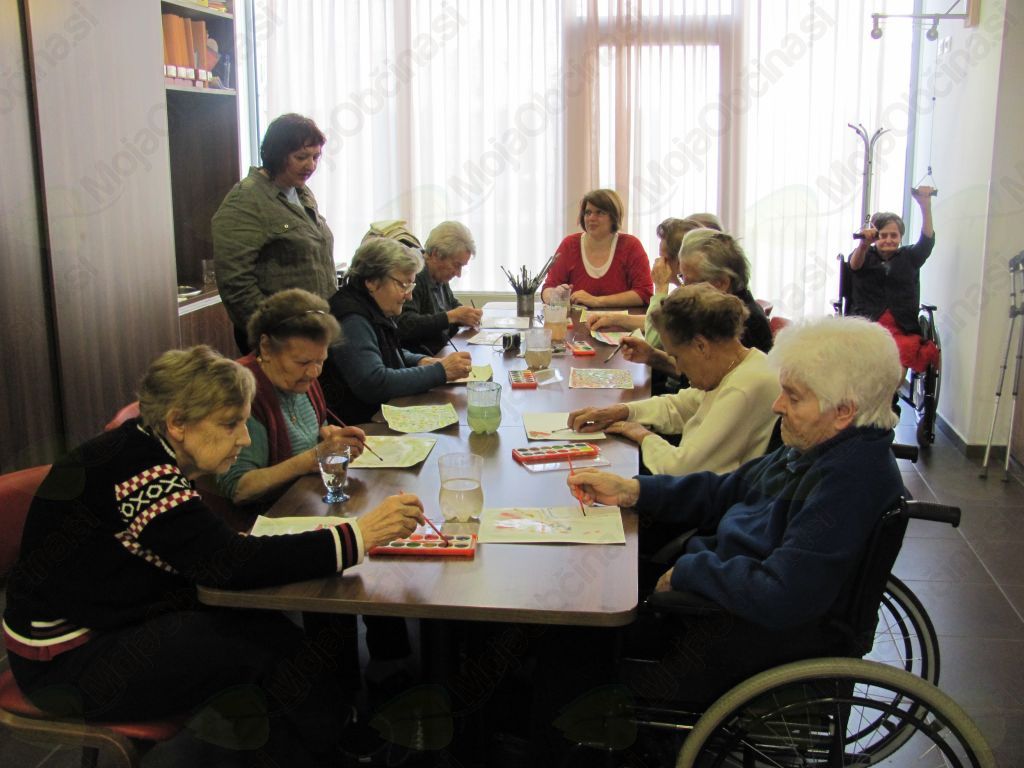 Enkrat tedensko obiščejo gospe z društva upokojencev Vipava in stanovalcem pripravijo štravbe (flancate), zadnje čase pa se pridružijo tudi pri zajtrkih stanovalcev. Pripravljajo jim jajčka po njihovi želji; bodisi na oko ali umešana, z ocvirki ali brez, na maslu ali olju … Prav te gospe dobro vedo, da je poleg dobre hrane pri stanovalcih zelo dobrodošel pogovor in petje. Zato v sobah obiščejo tiste stanovalce, ki ne zmorejo iz postelje. Odpravijo se tudi na varovani oddelek in s stanovalci, ki zaradi bolezni demence potrebujejo več nadzora in pozornosti, pojejo ljudske pesmi.