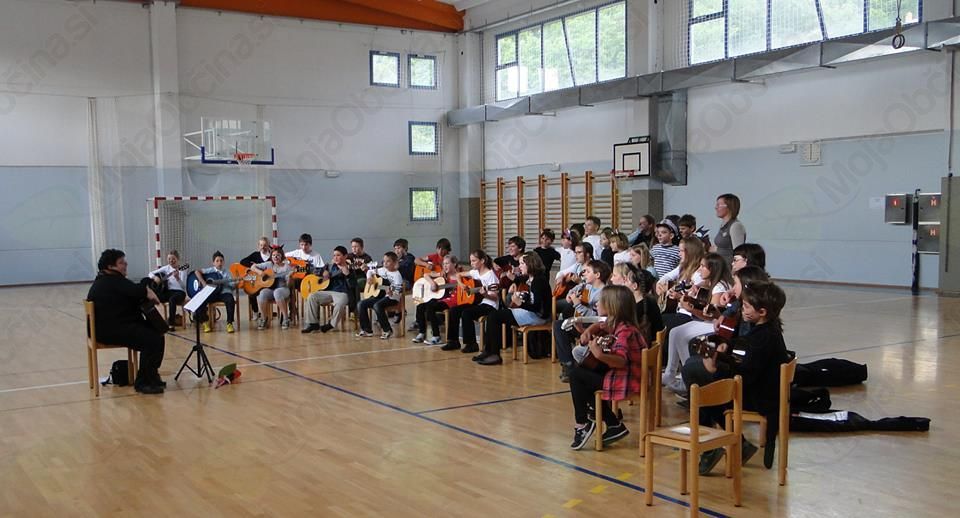 Prireditev je pevski zbor popestril z dramsko igro Maček Muri. Učence, ki so številne obiskovalce z doživetim petjem, plesom in igro popeljali v Mačje mesto, je na pevsko-dramski nastop pripravila učiteljica Marjana Ukmar. S svojim raznovrstnim glasbenim izborom pa so razveseljevali Mladi kitaristi pod vodstvom učiteljice Vide Trošt Vidic. Skladbe vseh generacij so narisale nasmeh na obraz marsikateremu poslušalcu in ga privabile, da se je prisrčnemu petju kitaristov tudi sam pridružil.