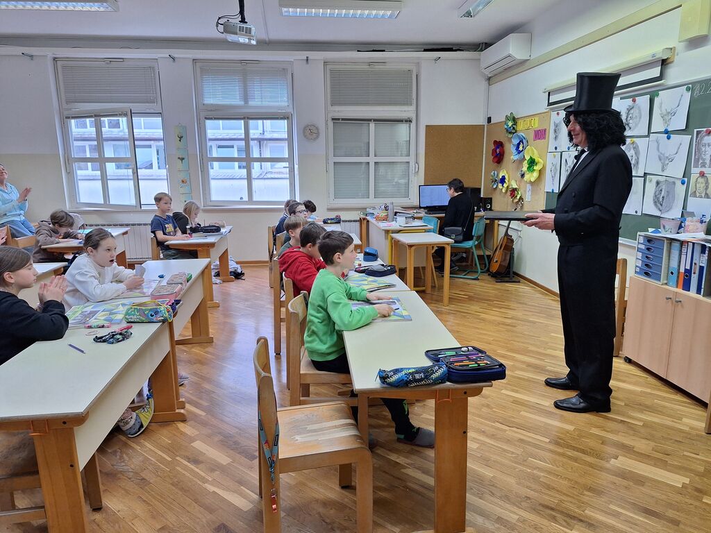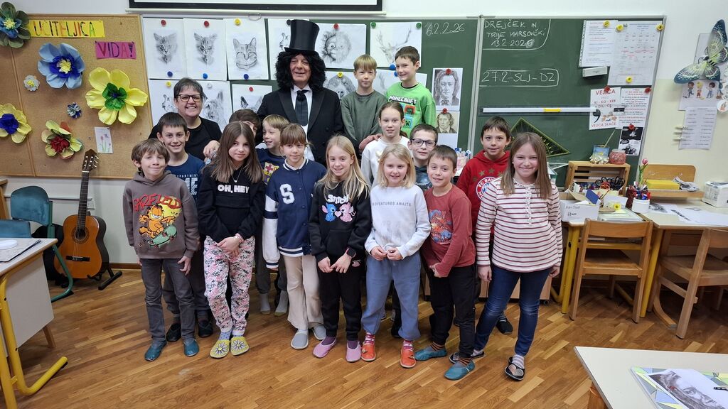 V petek, 6. februarja 2026, je prišel na našo šolo zelo nenavaden obisk. V organizaciji Lavričeve knjižnice Ajdovščina nas je obiskal sam g. France Prešeren (zaigral ga je g. Boris Jež). Svoj čas je podaril posameznim razredom in učencem delil sladke trenutke kulture in nas pogostil s Prešernovo poezijo. Učence je povprašal, ali vedo, kdo je. Učenci so ga takoj prepoznali, zato ga je zanimalo, katere njegove pesmi poznajo in kaj vedo o kulturi. Na koncu je recitiral Zdravljico ali O Vrba in vsem zaželel vesel praznik kulture. Za desert smo dobili še Prešernove verze v spomin na ta dogodek.