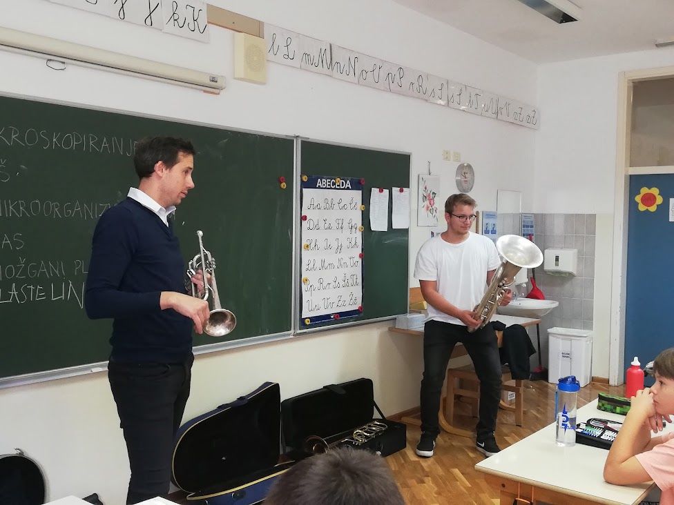 V sredo, 28.09.2022, smo imeli v 4. b razredu dva obiska. Najprej nas je obiskala gospa Tina Bevk, ki je s seboj prinesla mikroskope in različne pripomočke za mikroskopiranje, nato pa so nas obiskali še godbeniki Pihalnega orkestra iz Vrhpolja, ki so nam predstavili trobila in njihovo godbeniško šolo. Zaigrali so nam in nas povabili v svoje vrste.