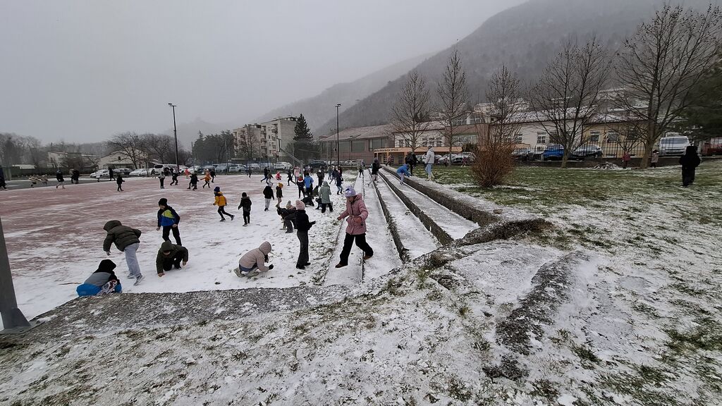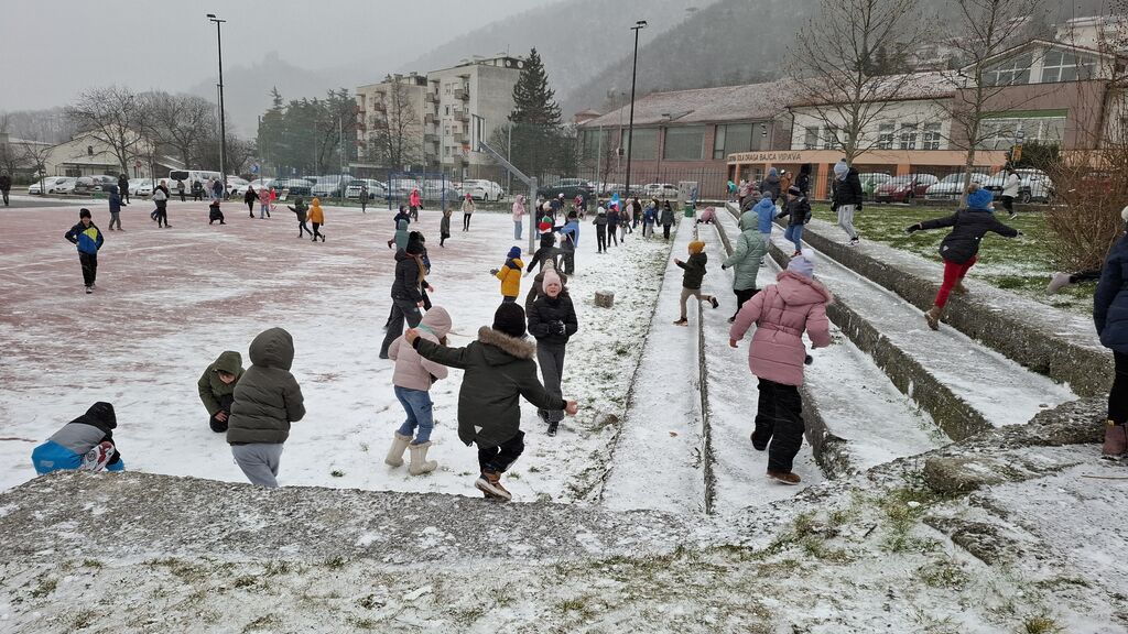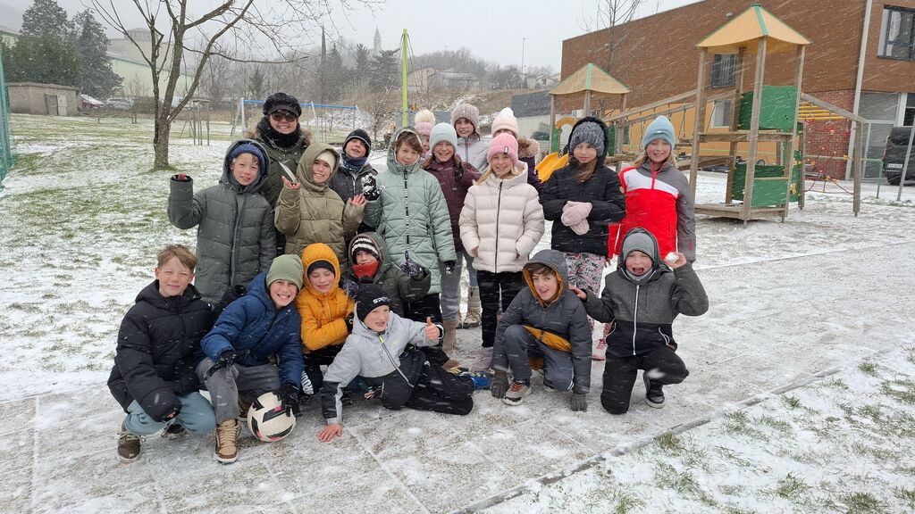 Kljub mrazu so se učenci OŠ Draga Bajca Vipava v času sprostitvenega odmora z veseljem zapodili med snežinke, zbirali sneg v kepe, se kepali, izdelali celo malega snežaka, vriskali, skakali, se drsali po bregu ... Koliko veselja je bilo slišati in videti, ni mogoče opisati z besedami, a ko smo videli premražene roke, rdeča lička, nasmejane obraze in veselje v očeh, je bilo povedano vse!